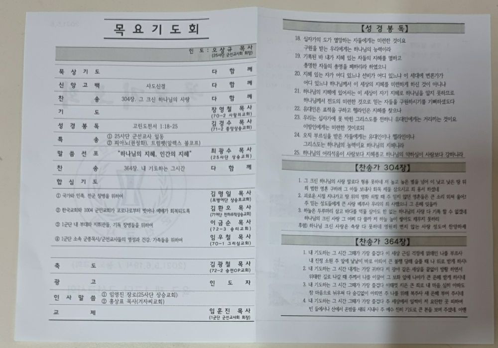 1군단군선교사회 목요기도회